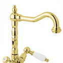 Назначение: для умывальника • Конструкция: двухрычажный • Монтаж: горизонтальный • Материал: латунь, покрытие - золото • Подводка: гибкая • Монтажные отверстия: 1 отверстие • Форма излива: традиционная • Душевая лейка в комплекте: нет • Аэратор: есть • Донный клапан в комплекте: есть