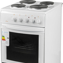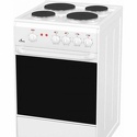 Тип конфорок: электрические • Рабочая поверхность: эмаль • Тип духовки: электрическая • Размеры (ШxВxГ): 500x850x600 мм • Цвет: белый • Конфигурация электрических конфорок: 2 x 1000 g 2 x 1500 g • Электрические конфорки: всего - 4 • Тип управления: механическое • Переключатели: поворотные • Ящик для посуды: есть
