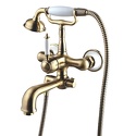 Комплектация - Держатель душевой лейки, душевой шланг, ручной душ, Назначение - Для ванны и душа, Покрытие - Бронза, Материал корпуса - Латунь, Встраиваемый - Нет, Донный клапан - Нет, Присоединительный размер - 1\2", S-образные эксцентрики - Есть, Термостат - Нет, Количество монтажных отверстий - 2, Длина излива - 213, Тип - Однозахватный, Тип подводки - Жесткая, Форма излива - Традиционная, Высота - 26.4, Поворотный излив - Нет, Цвет - Бронзовый, Аэратор - Есть, Глубина - 23