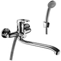 Комплектация - душевой шланг, Держатель душевой лейки, ручной душ, Тип - Однозахватный, Назначение - Для ванны и душа, Материал корпуса - Латунь, Термостат - Нет, Покрытие - Хром, Коллекция - B, Присоединительный размер - 1\2", Количество монтажных отверстий - 2, Тип подводки - Жесткая, Форма излива - Традиционная, S-образные эксцентрики - Есть, Поворотный излив - Да, Донный клапан - Нет, Аэратор - Есть, Ширина - 17.6, Цвет - Серебристый, Длина излива - 368, Глубина - 38.2