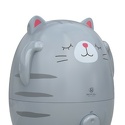 Купили за 1930 руб в райБТ. Пользуемся около месяца. С рождения сына у нас стоял обычный паровой, именно паровой - т.к. в свое время не было времени заморачиваться в отзывах - оставляет налет или нет, плюс был по соц.карте. И вот спустя 2 года нас его бульканье заманало и мы решили сменить его на ультразвуковой. Первый восторг, это конечно дизайн, сын его обожает просто, пар идет из ушек. Второй, что он достаточно тихий, особенно по сравнению с паровым. Сам постоянный шум как тихий ноутбук, время от времени побулькивает, но мы привыкли быстро и теперь можем спать со включенным увлажнителем, опять же по сравнению с паровым - это было невозможно! Мощность правда для нас оказалась маловата, НО у нас помимо основного отопления в комнате 13кв.м. всегда включен обогреватель зимой, после прокачки с 20% влажность при закрытой двери повышает до 40%. Паровой же за пару часов даже с приоткрытой дверью мог на 20% в легкую повысить, а с закрытой так и вообще до 60% наувлажнять) Но данная проблема нам теперь не актуальна, ибо он может работать теперь и ночью. Хватает до 8 часов бака. Луж нет, при замене ну да может прокапать чуть-чуть (капли, не пол стакана))) воды из-за переворотов, у нас просто платок рядом всегда. Заливать просто: снял декоративную верхнюю половину котика, поднял и перевернул бак, отвинтил крышку, залил в отверстие воды и в обратном порядке) Кому важно - декоративная часть никак не крепится. И да, голубая кнопка и правда яркая, но ничего не заклеиваем, просто на ночь кота поворачиваем к кровати попой и все, получается мягкий голубой свет как от светильника в розетке)