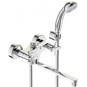 Комплектация - Смеситель, шланг, лейка, фиксируемый держатель лейки,набор креплений, инструкция, паспорт, гарантийный талон, Покрытие - Хром, Термостат - Нет, Материал корпуса - Латунь, Встраиваемый - Нет, Тип - Двухзахватный, S-образные эксцентрики - Есть, Количество монтажных отверстий - 2, Донный клапан - Нет, Система быстрого монтажа - Да, Присоединительный размер - 1\2", Тип подводки - Жесткая, Поворотный излив - Да, Назначение - Для ванны и душа, Длина излива - 320, Аэратор - Есть, Ширина - 17.3, Глубина - 40, Форма излива - Традиционная, Цвет - Серебристый, Высота - 12.8
