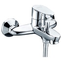 Назначение: ванна+душ • Конструкция: однорычажный • Монтаж: вертикальный • Клапан: керамический • Материал: латунь, покрытие - хром • Подводка: жесткая • Монтажные отверстия: 2 отверстия • Форма излива: традиционная • Душевая лейка в комплекте: есть • Держатель для душевой лейки: настенный держатель • Аэратор: есть • Донный клапан в комплекте: есть