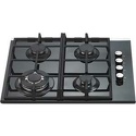 Варочная поверхность, газовая, панель из закаленного стекла, 4 газовые конфорки, трехконтурная конфорка, переключатели поворотные, электроподжиг